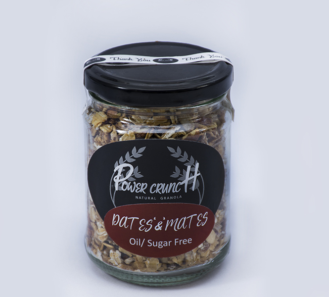 A satisfying oil and sugar free granola “sweetened” with dates and orange juice , and flavoured with a touch of spice and citrus zest . And packed with Middle Eastern nuts and dried fruit….: